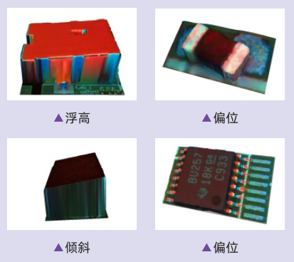 ● 3D技術與顏色特征算法的完美結合,高效檢測元件及焊點的不良